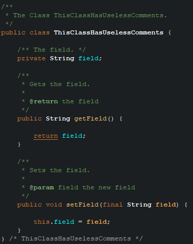 However, what’s the value of these comments? Nothing more than what is already expressed by the code.